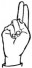 На ћирилици написано СИМОНА РАДУШКИ састоји се из 13 слова [?]. Исписано ћириличном једноручном азбуком за глувонеме: